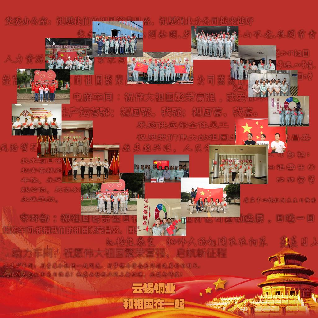 神州大地繁花似錦,祖國長空曲樂如潮,我們不忘初心,砥礪前行,真誠祝愿祖國繁榮昌盛,祝愿云錫蒸蒸日上。