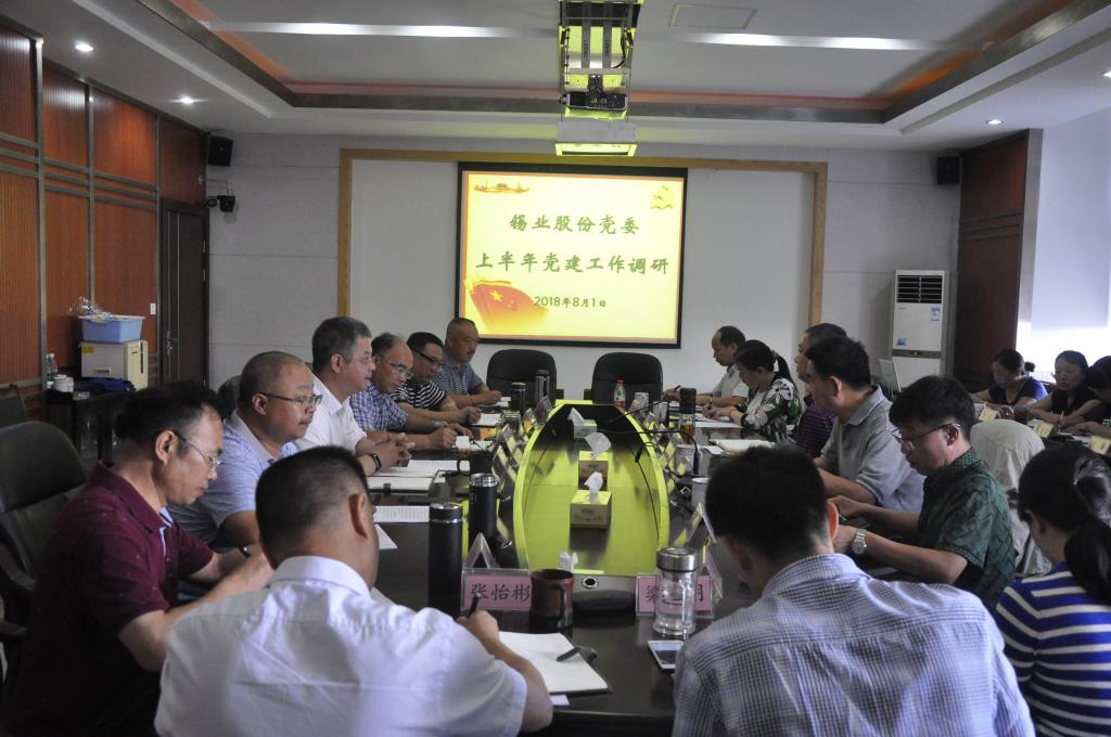 7月31至8月1日,錫業股份黨委書記、董事長湯發,黨委委員、紀委書記羊慎率第一調研組,對郴州公司2018年上半年黨建、生產經營、深改攻堅等工作進行調研,要求統一思想,堅定信心,提振士氣,凝聚攻堅,全力實現扭虧目標和持續健康發展。