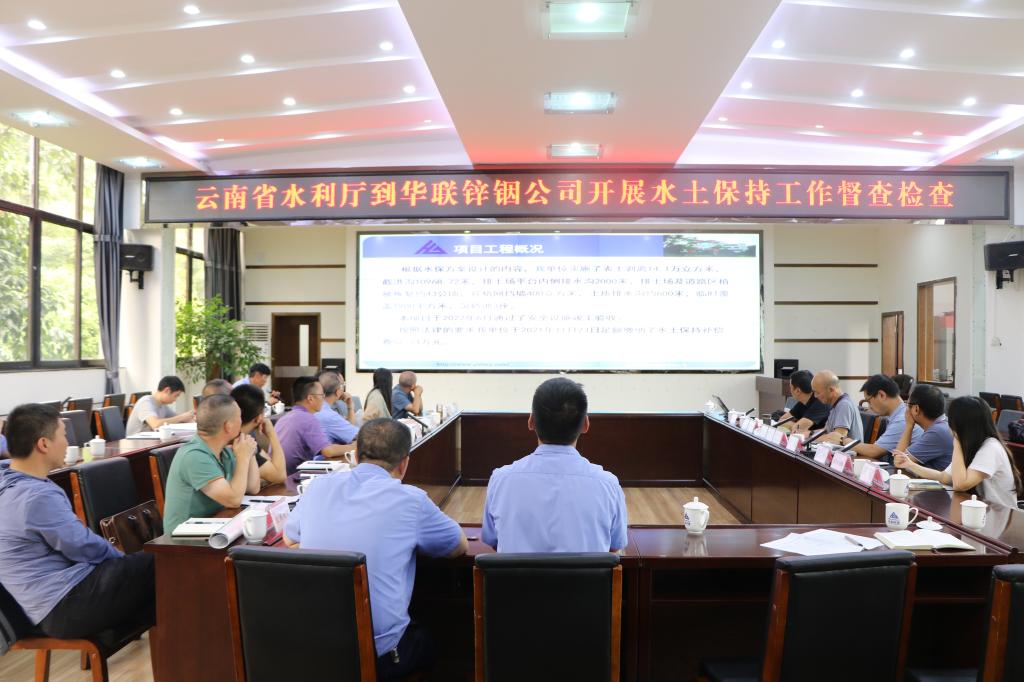 近日,云南省水利廳水土保持生態環境監測總站正處級干部李叔東率檢查組到華聯鋅銦公司開展水土保持工作督導檢查。華聯鋅銦公司黨委副書記、副董事長、總經理趙云魁介紹相關工作情況。