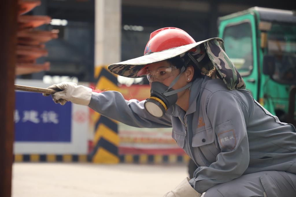 在一頂頂特殊的安全帽下,是一張張掛滿汗珠的臉龐;拉開口罩、取下護目鏡,個個都是溫柔的動人笑臉。她們每天與陰極銅板打交道,在產品運輸區域經受著風吹日曬雨淋,每人佩戴的特殊安全帽因此而來,是質監中心為了緩解每天八小時的戶外暴曬對姑娘們皮膚造成的傷害,踐行“我為群眾辦實事”承諾的體現,也成為了銅業分公司質量監測中心檢驗三組的標志。
