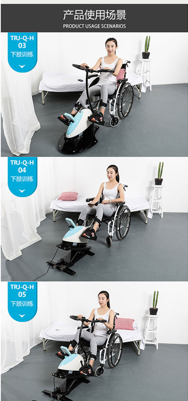 智能下肢康復(fù)器材:智能下肢康復(fù)訓(xùn)練機(jī), 具有患者從完全被動(dòng)訓(xùn)練階段到主動(dòng)和被動(dòng)訓(xùn)練相交叉的助力訓(xùn)練階段到完全的主動(dòng)訓(xùn)練階段到初期主動(dòng)力量訓(xùn)練階段的患者康復(fù)過程。